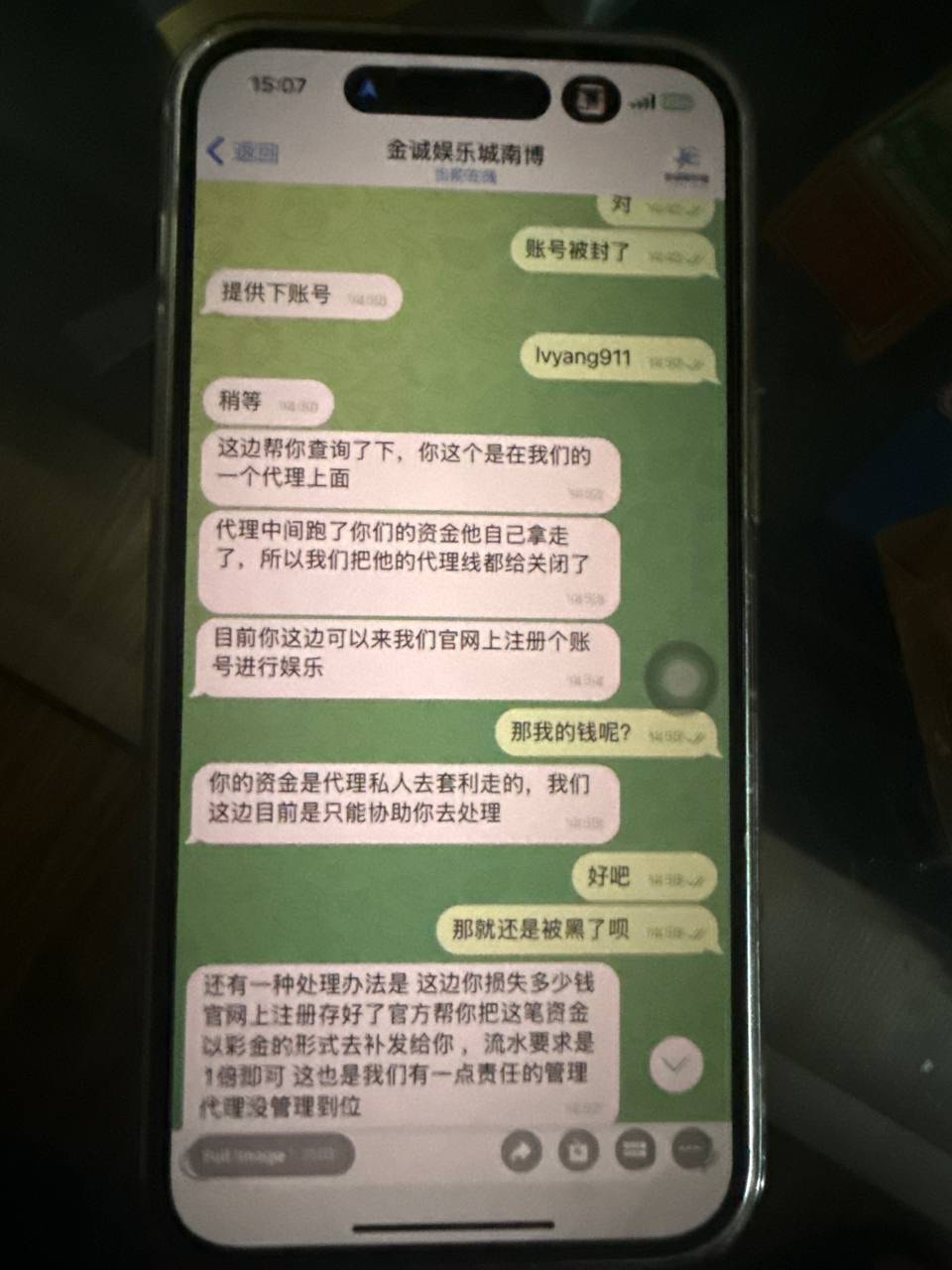 事情的经过 在菲律宾认识了南博 开始觉得人不错 就是爱吹牛逼 前面回国了后边会菲律宾弄了个盘口体育盘 金诚娱乐 邀请我去上班 我自己的会员自己的数据 开的大哥5万送5 万开始说的不卡款 后来出不起款人工卡款 后边和我的会员说代理卷钱跑路了
